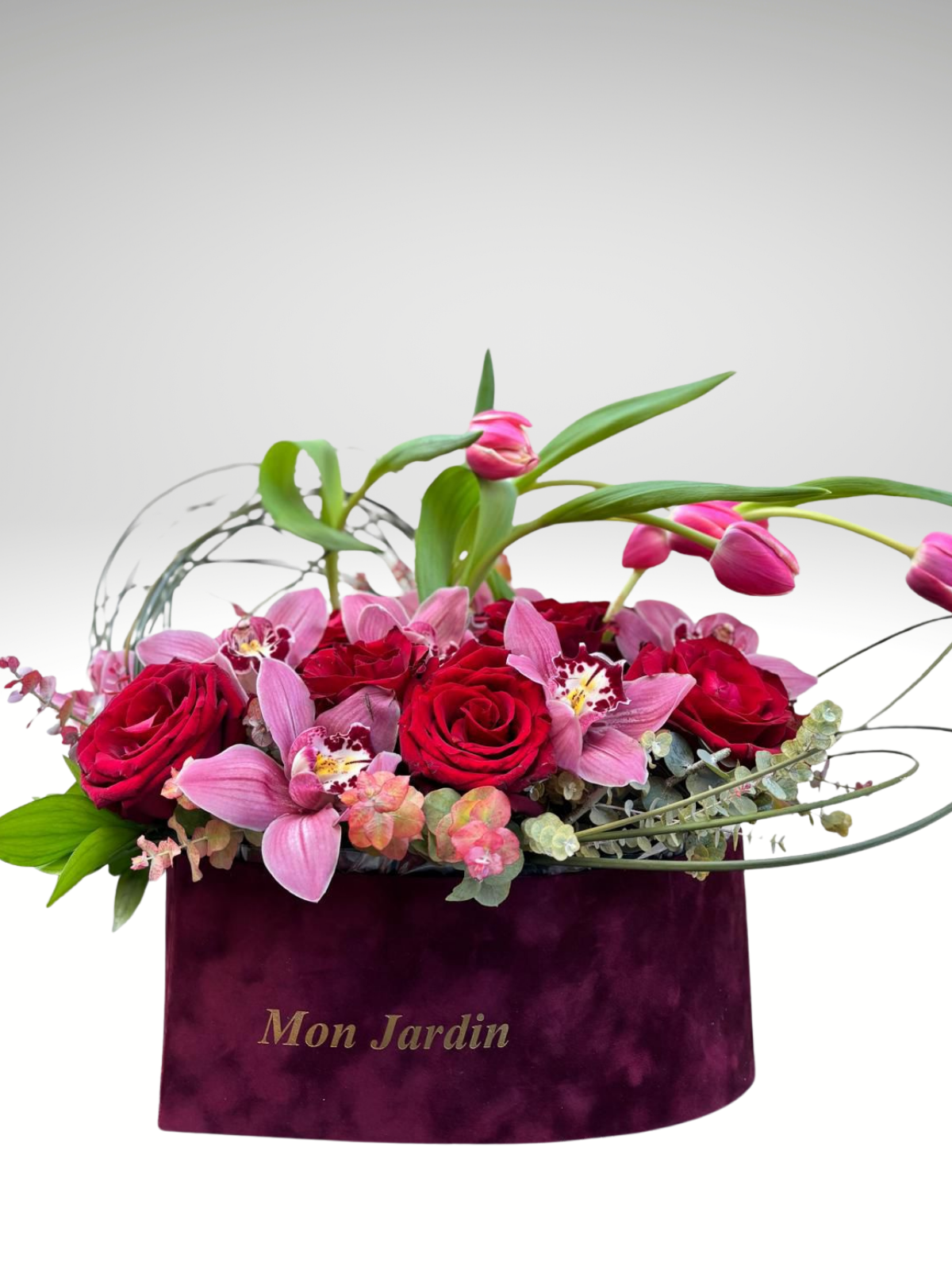 Kalp kutu aranjmanı, aşkı ve tutkuyu en zarif şekilde ifade eden özel bir çiçek tasarımıdır. Özenle seçilen taze güller ve çiçeklerle hazırlanan bu şık aranjman, romantik anları unutulmaz kılar.