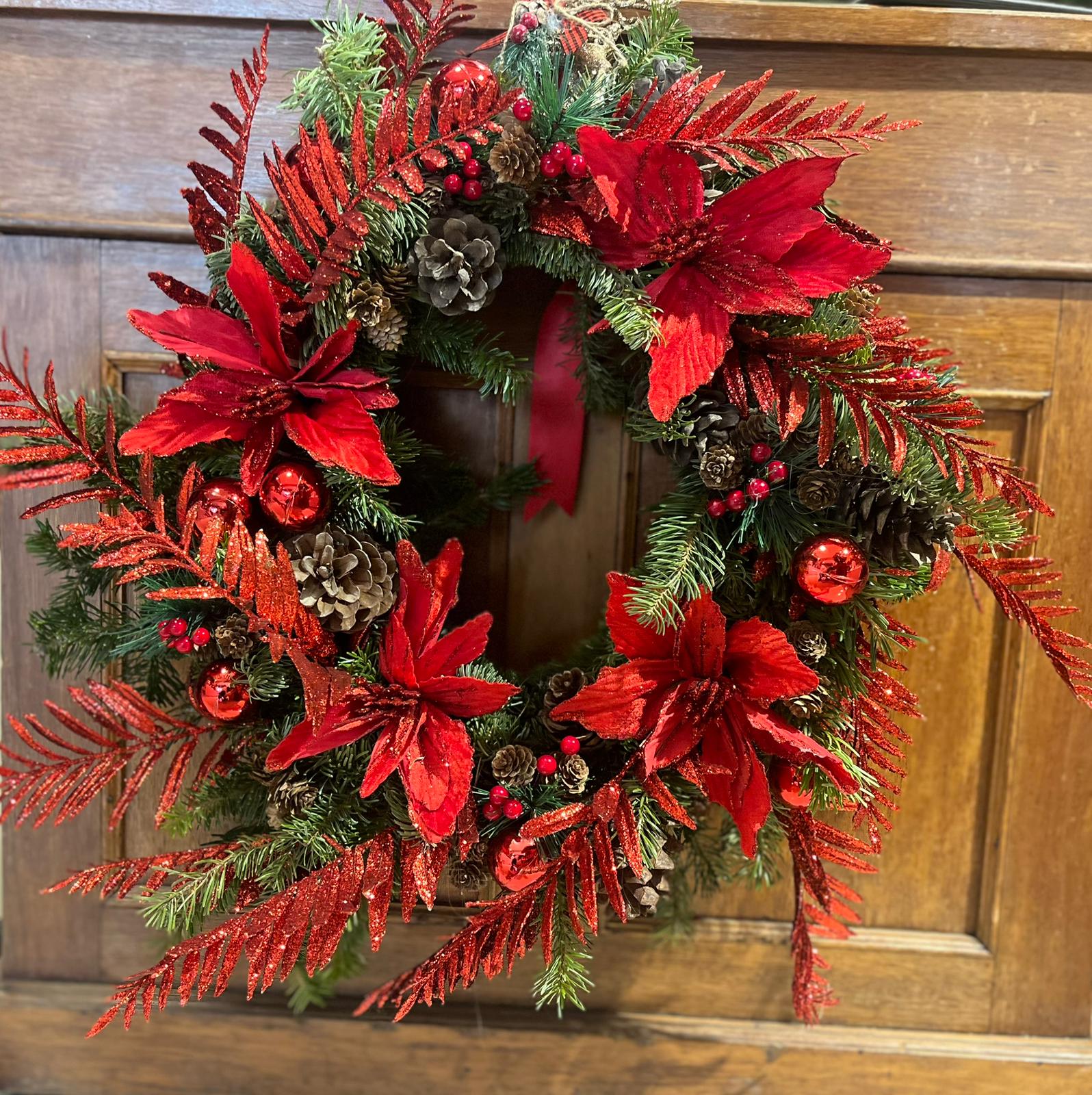 ÜRÜNÜMÜZ KIRMIZI YILBAŞI ÜRÜNLERİNDEN OLUŞMAKTADIR. CANLI ÇAM ÜZERİNE YAPILMIŞTIR. ASMAK İÇİN KURDELESİ BULUNUR. ÇAPI 45 CM. TEK ÜRÜNDÜR.