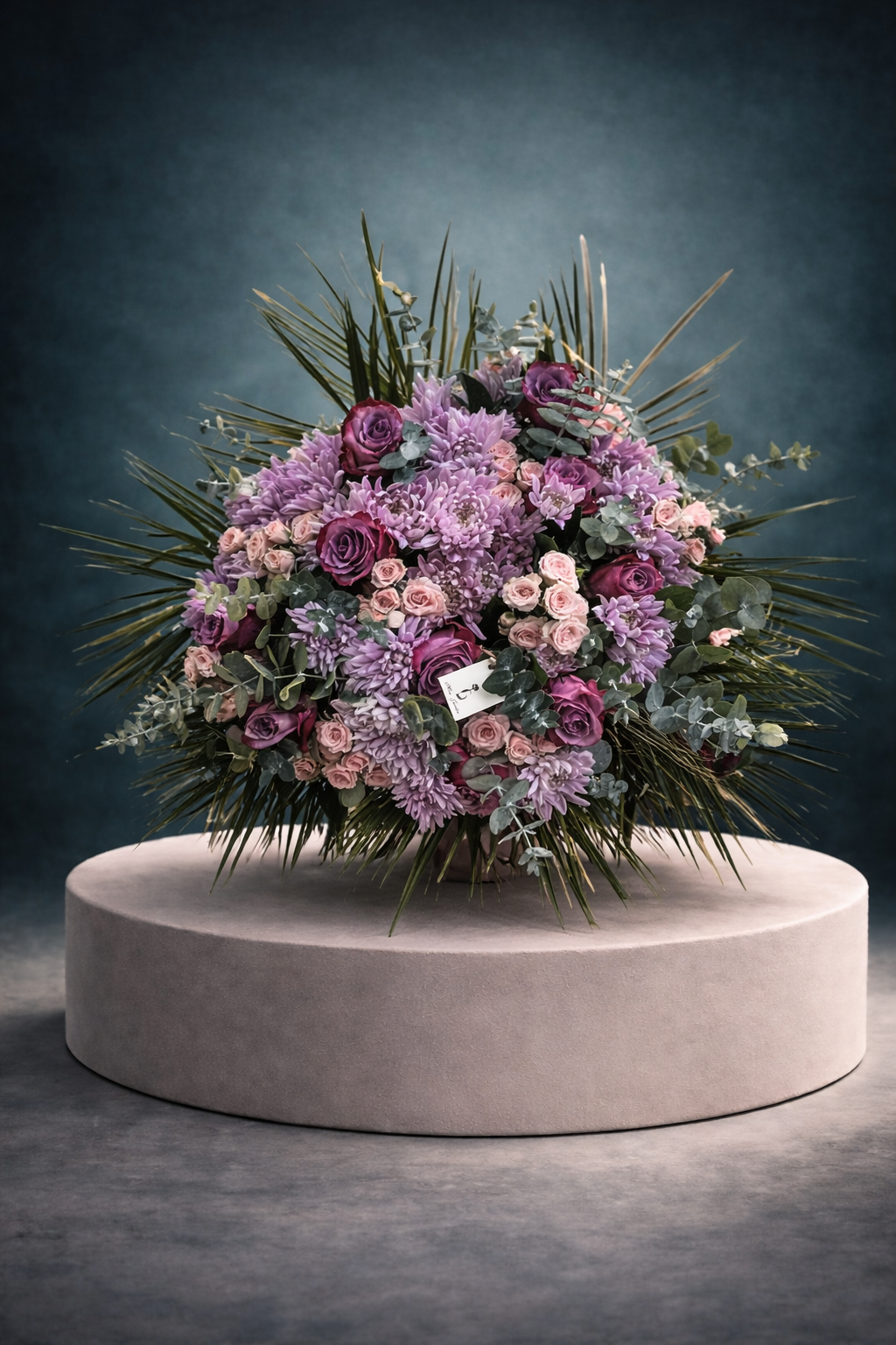 Lilanın romantik tonu, pudra güllerin zarafeti ve yeşilin doğal asaleti bu özel bukette kusursuz bir uyumla buluşuyor. Özenle seçilmiş güller, krizantemler ve doğal yeşilliklerle hazırlanan bu tasarım; sofistike zevklerin ve modern şıklığın güçlü bir yansımasıdır.