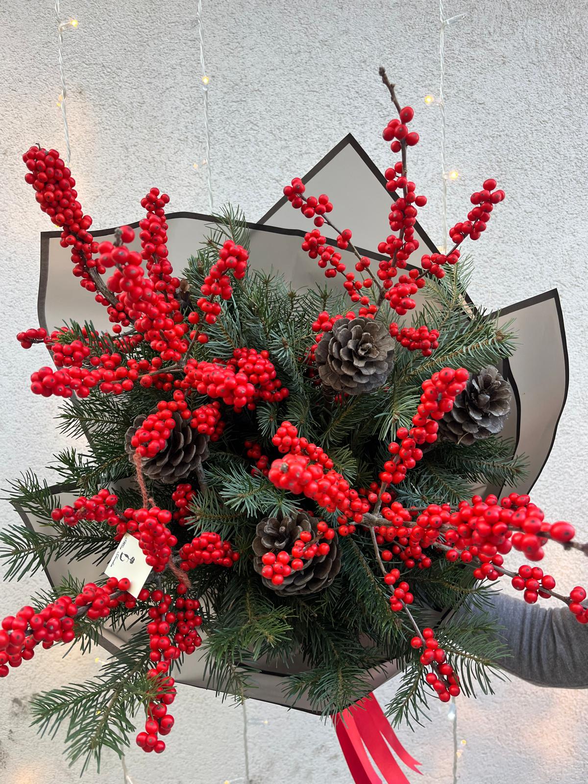 BUKETİMİZİN İÇERİSİNDE İLEX DALLARI BULUNMAKTADIR.