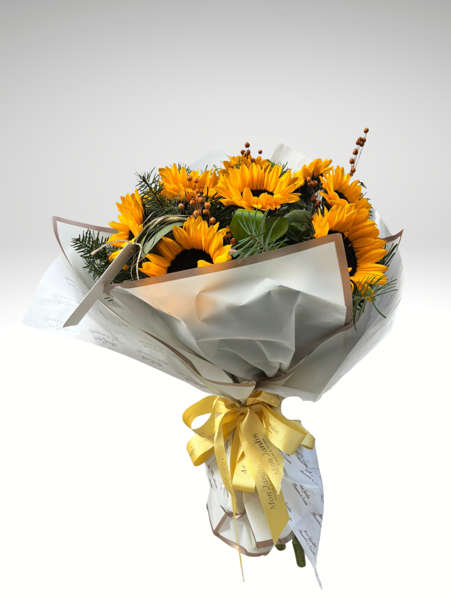 İÇERİSİNDE 10 ADET TAZE AYÇİÇEKLERİ BULUNMAKTADIR.
